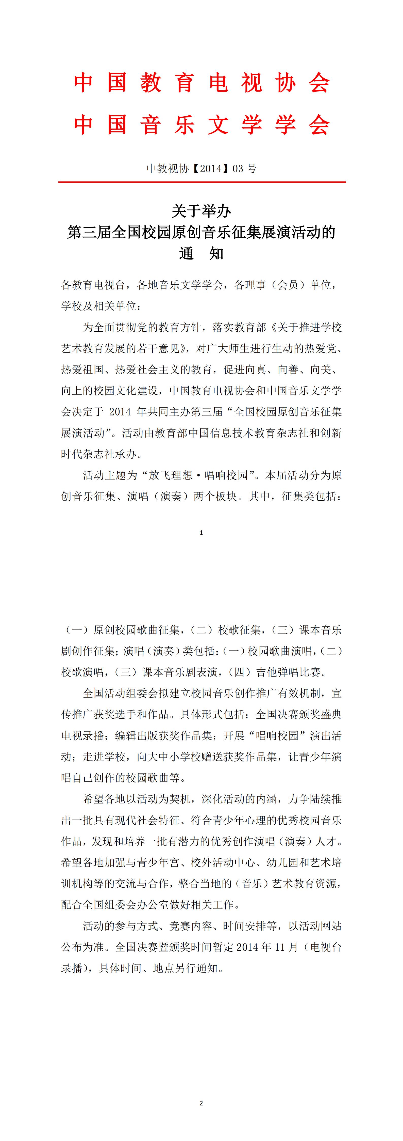 关于举办第三届全国校园原创音乐征集展演活动通知