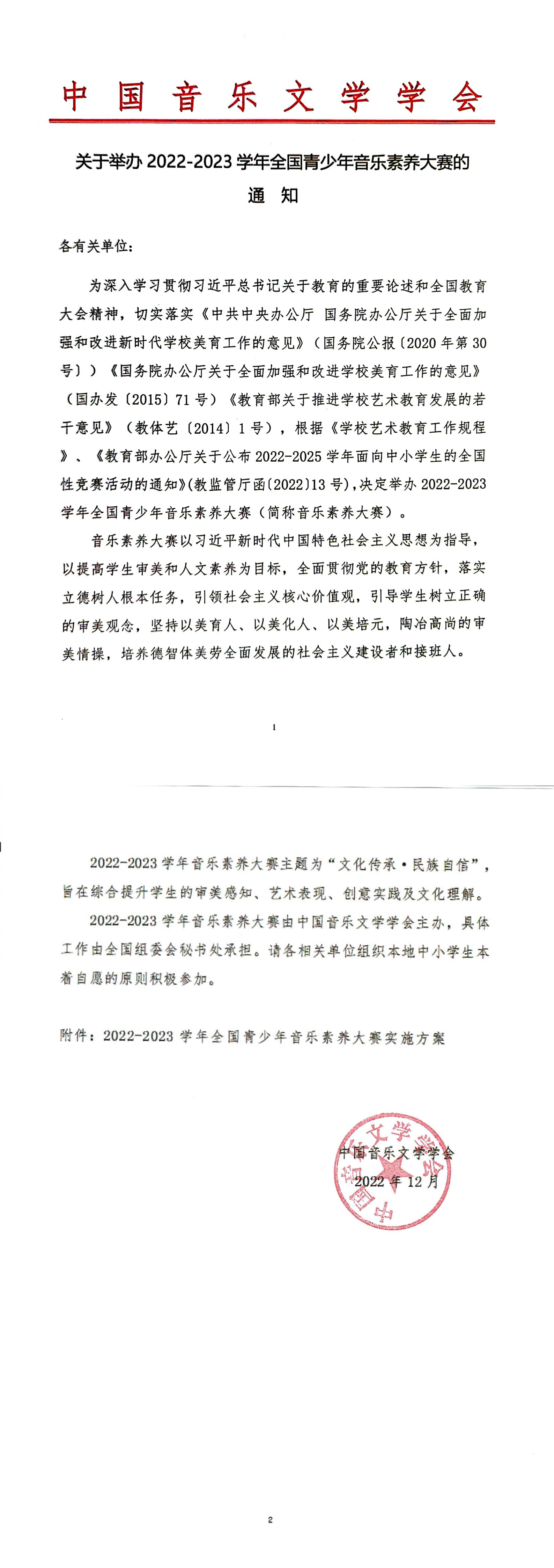 关于举办2022-2023学年全国青少年音乐素养大赛的通知