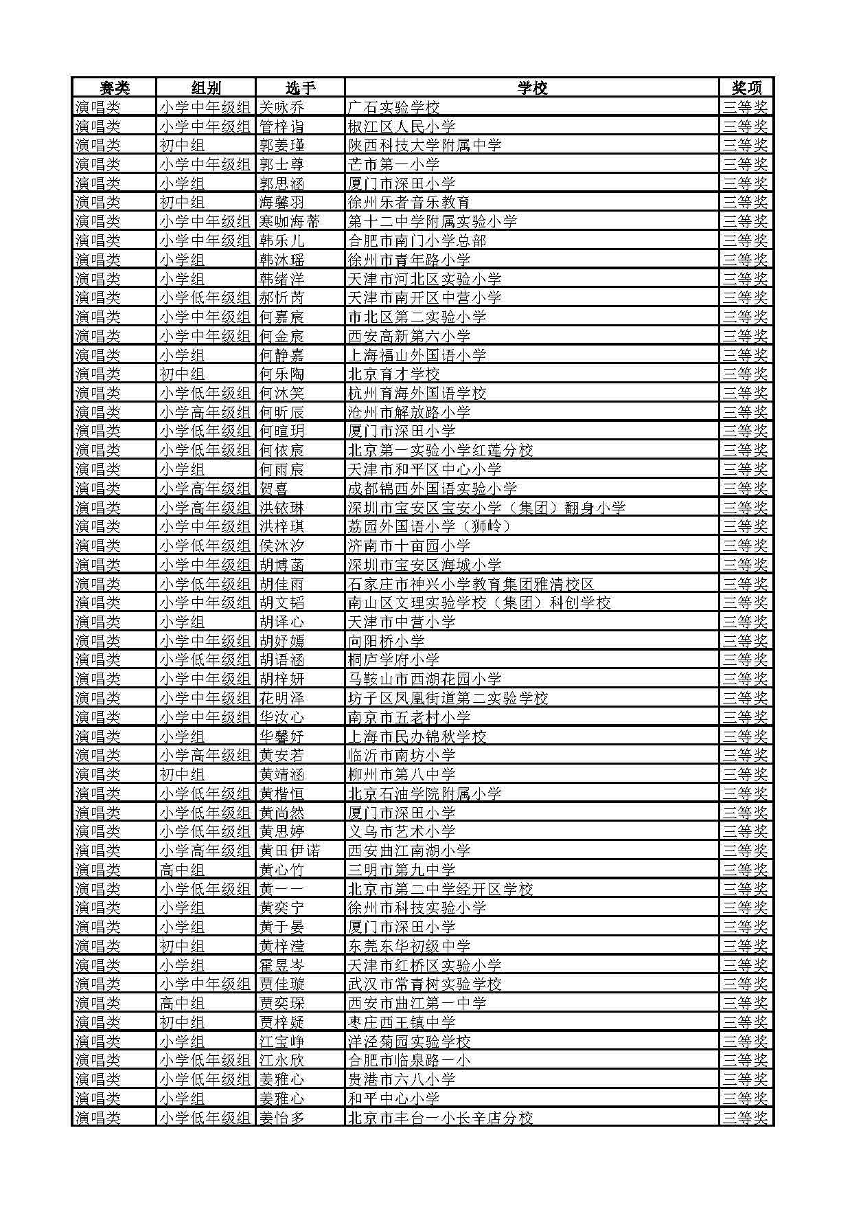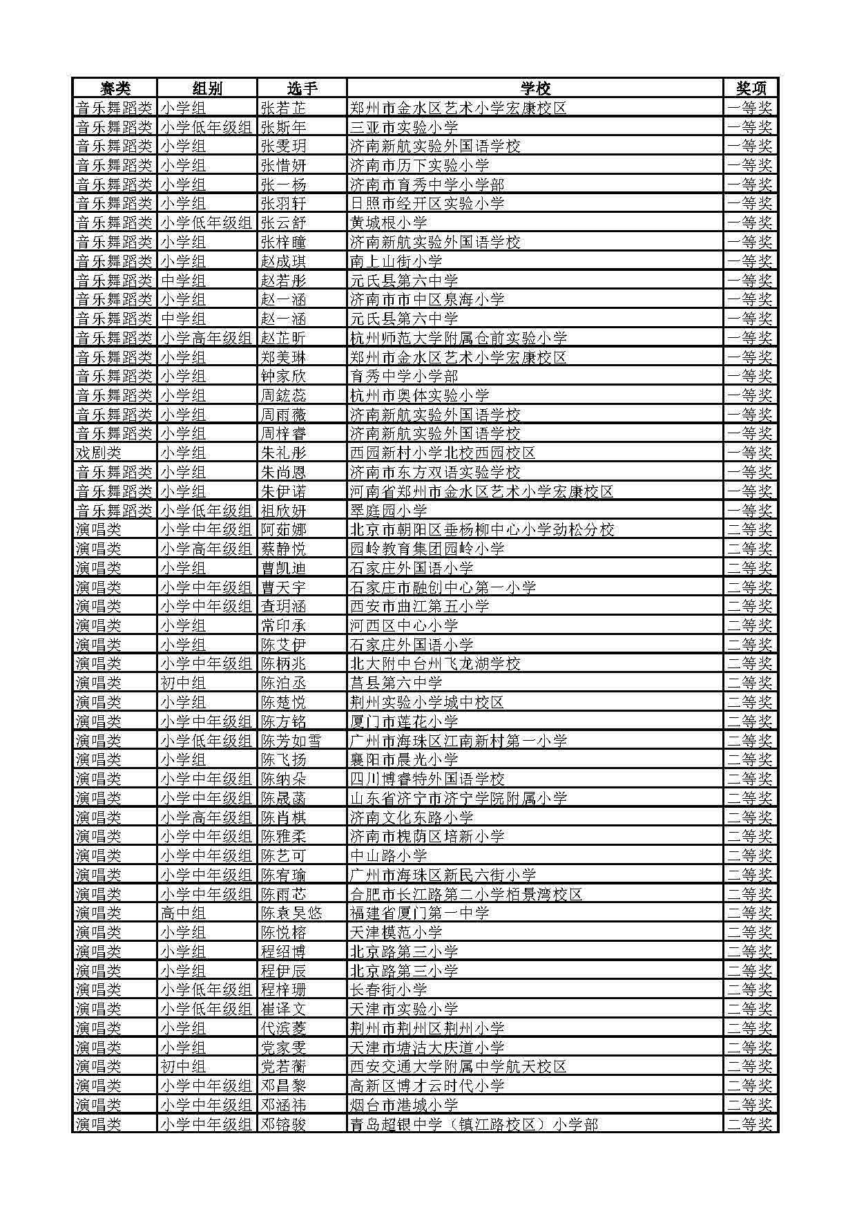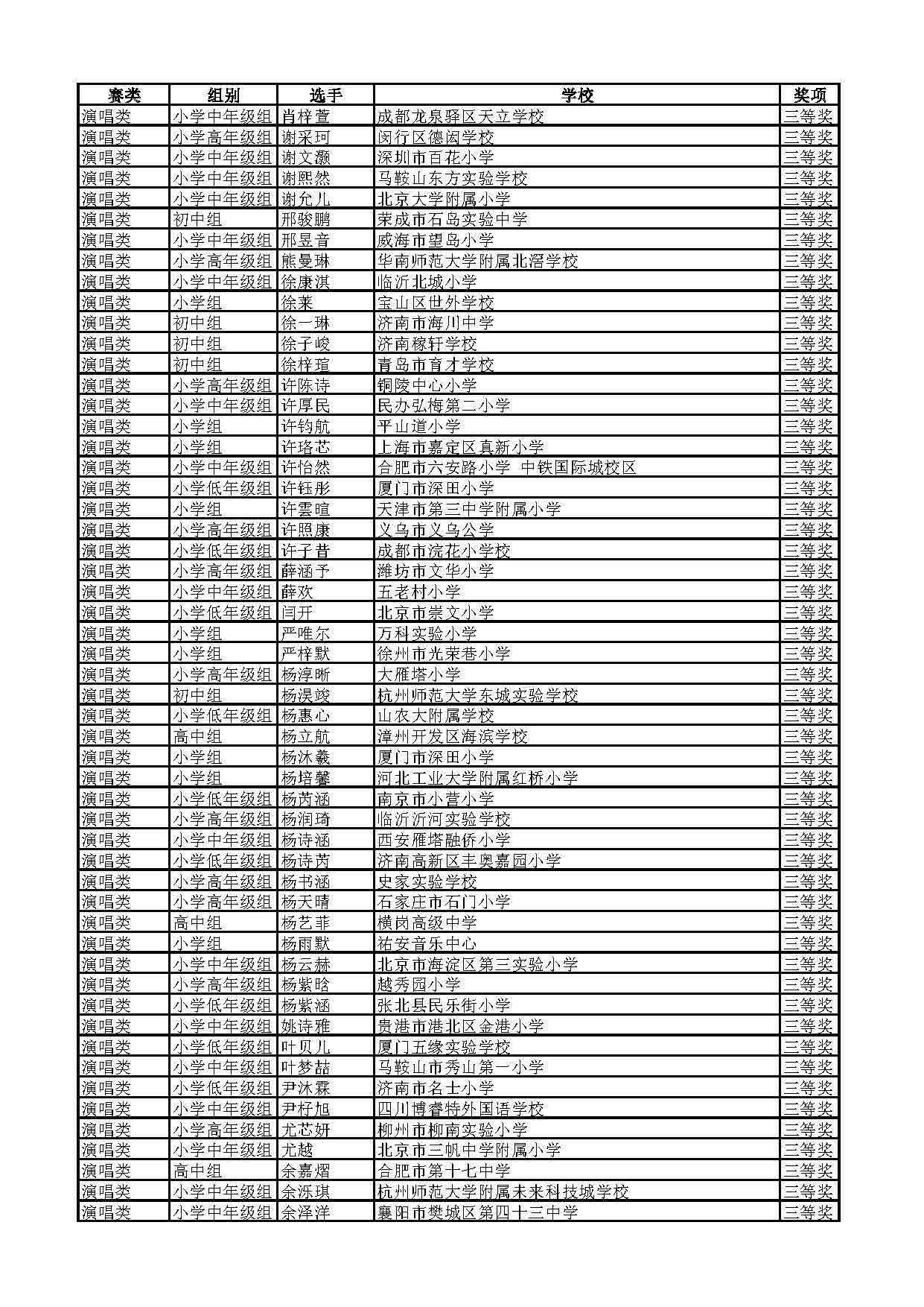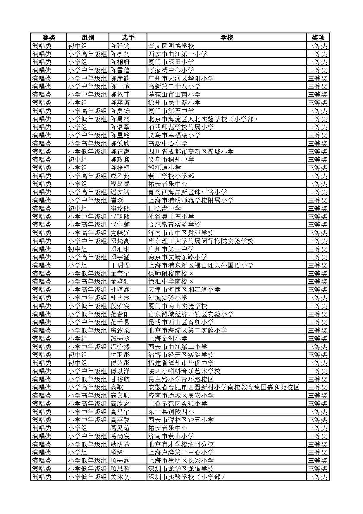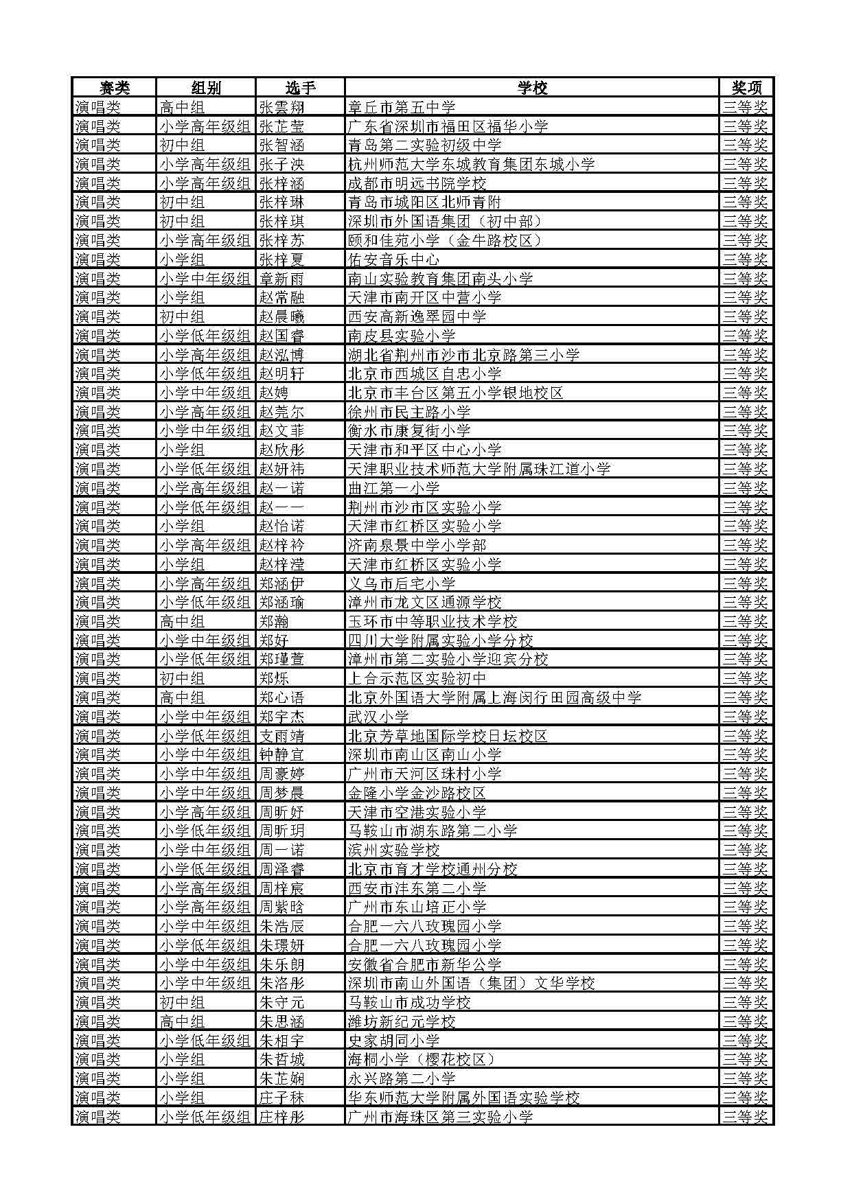 2023-2024学年青音赛决赛获奖名单公示