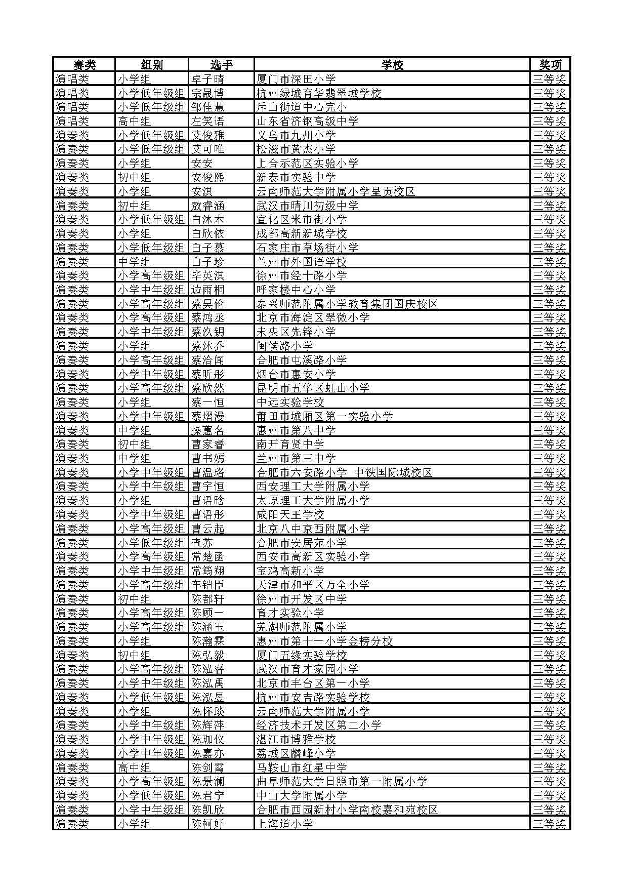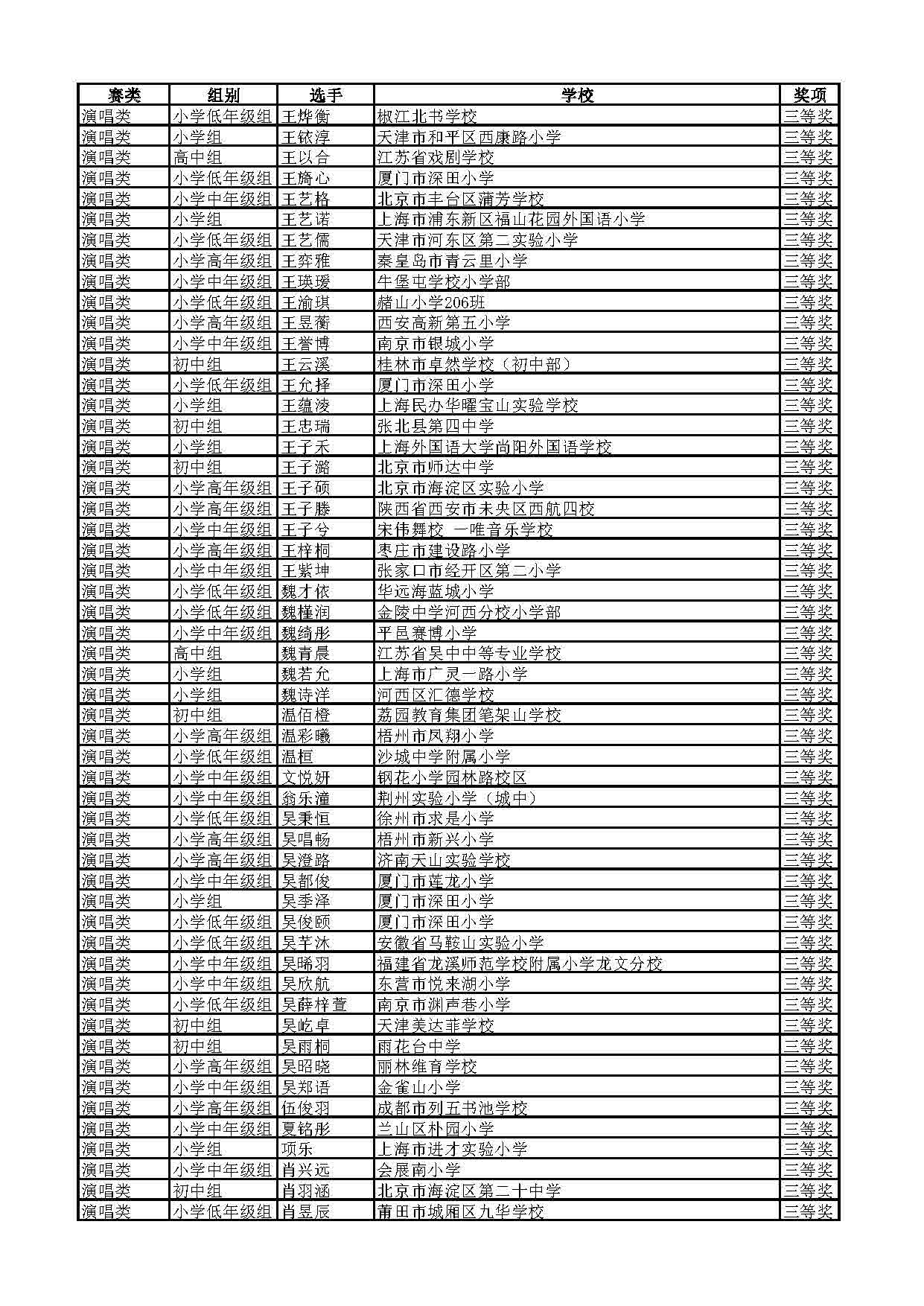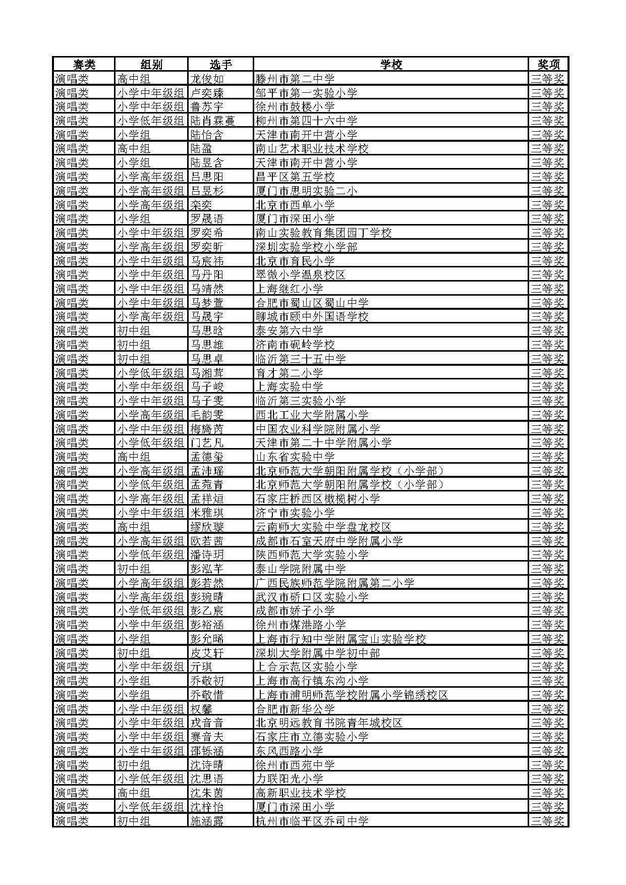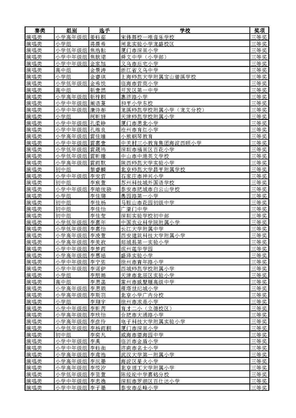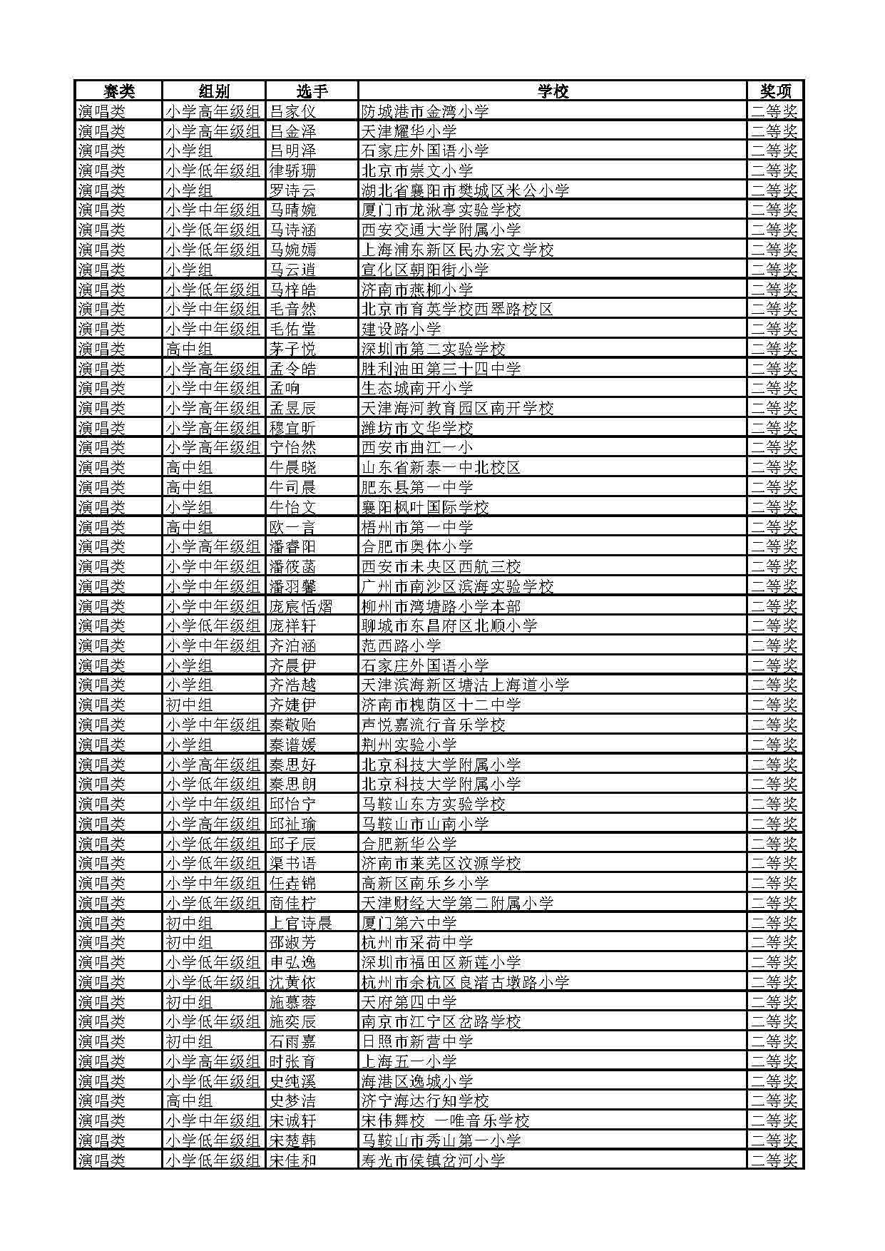 2023-2024学年青音赛决赛获奖名单公示